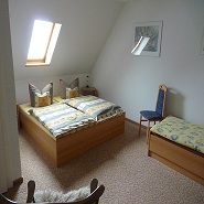 Schlafzimmer mit 3 Betten + Aufbettung